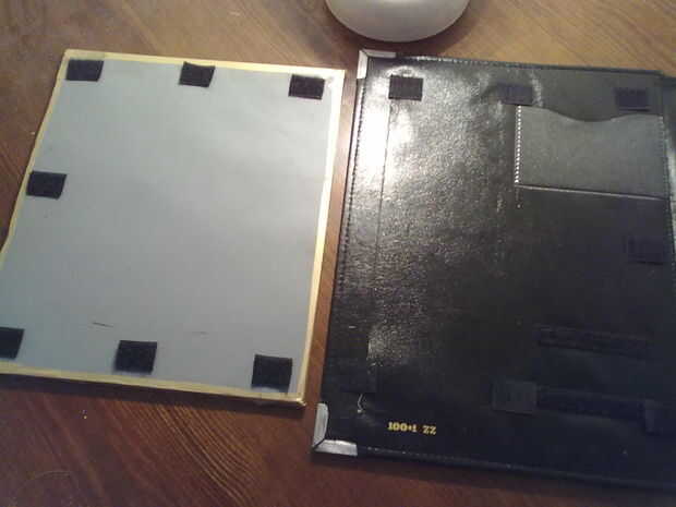 Pegue unos velcros aquí y allá y Voilà. Caso perfecto para él. Usted será capaz de separar su junta y fijarlo a una pared, una mesa, una nevera para dejar mensajes... Ser creativo :)