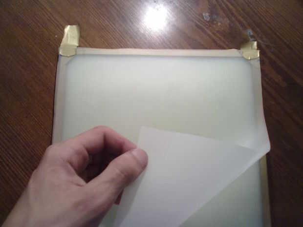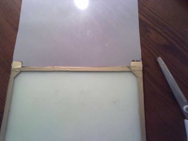 I´m usando un plástico de un monitor LCD. Todo lo que necesitas es hacer ajustes y alguna cinta. Nada de lujo:)
