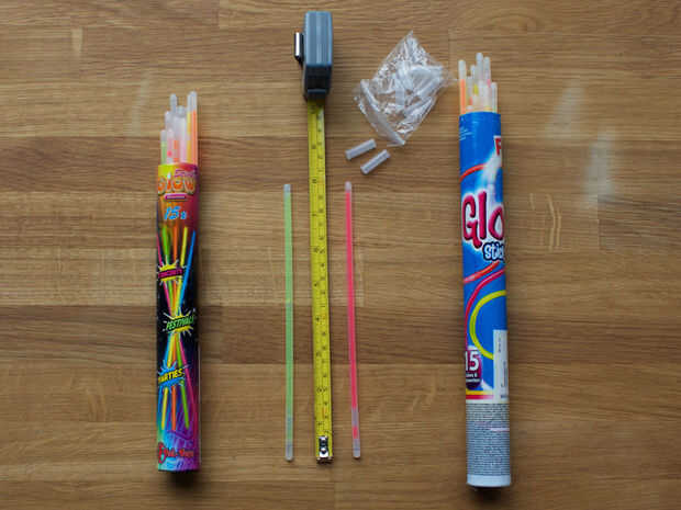 1) Haz tus pequeño resplandor palos fuera de su cajón de partido o ir a comprar a la tienda más cercana de la fiesta. (para belgas: fui a AVA y compró una caja de 15 Euro 1,39). La mayoría de las marcas es del mismo tamaño (aproximadamente 20cm) aunque el cuadro puede ser más grande.