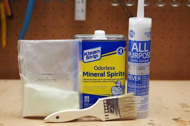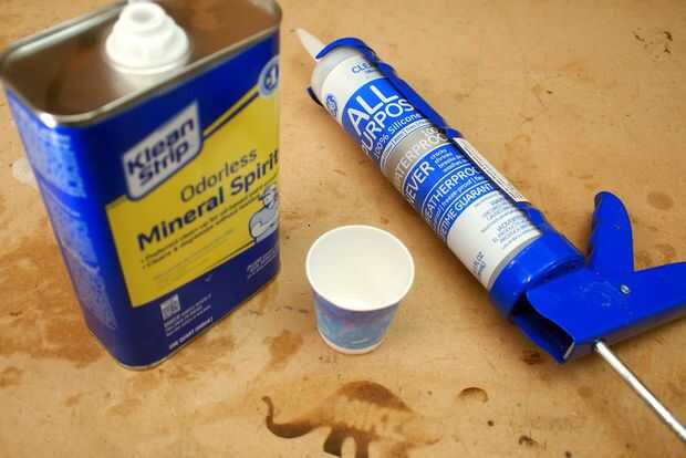 Usted querrá use 100% claro pura silicona masilla. Buscar "silicona me" como "silicona II" tiene molde retardar agentes, queremos pura silicona. La silicona puede diluirse con aguarrás. Puede encontrar la masilla y los espíritus minerales en su ferretería local.