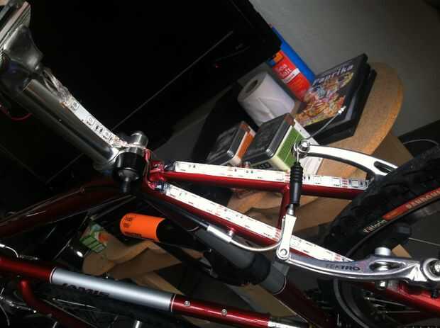 Sujete las tiras de LED hasta su bicicleta. (Puede ser útil contar con una ayuda de amigo para este paso).