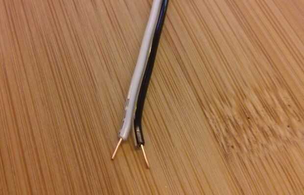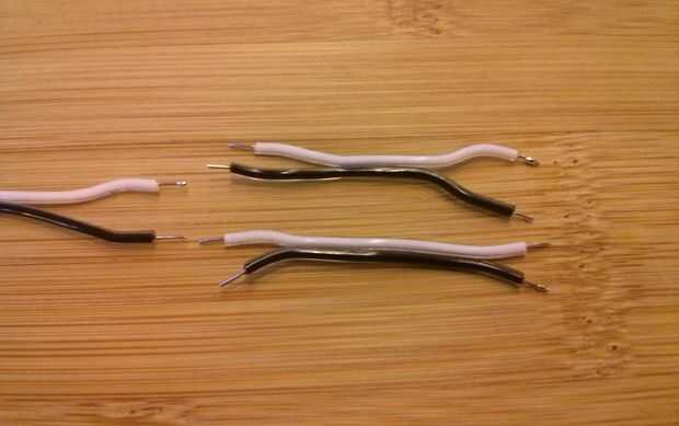 • Tome las dos tiras más largas y ponerlos lado a lado, con los extremos pelados hacia la izquierda. Puede rizar un poco. No preocuparse por ello. Esto significa que tienes algunos del centro del rollo. (Si esto sucede, sólo hay que poner algo encima de la pieza a peso abajo de plano. Hace mucho más fácil de soldadura).