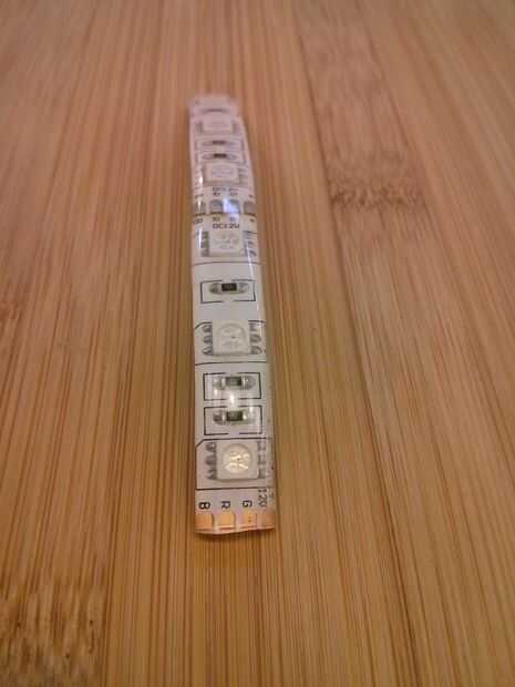 • En algún lugar apagado a la izquierda, agregue su tira de LED 2-sección de centro. Asegúrese que el botón etiquetado "12V" en el mismo lado (superior o inferior) como con sus tiras largas.
