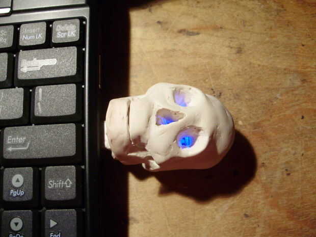 pensé que sería divertido tener un pendrive que era marca Honda o Ford o Chrysler, etc.. Sólo sucede que tenía una llave del coche no deseado.Hackeado de la lámina dominante, ahuecada la cabeza plástica de clave y me ajustaron un pendrive dentro.Paso