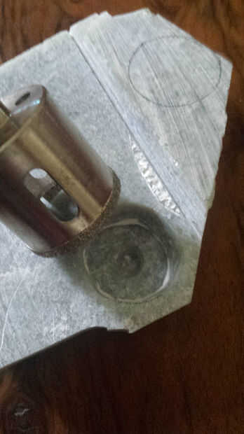 Piedra de base utilizando un taladro con broca de perforación.