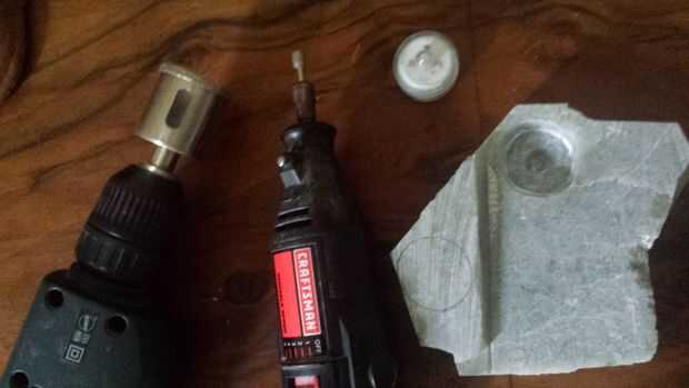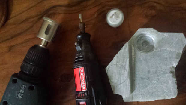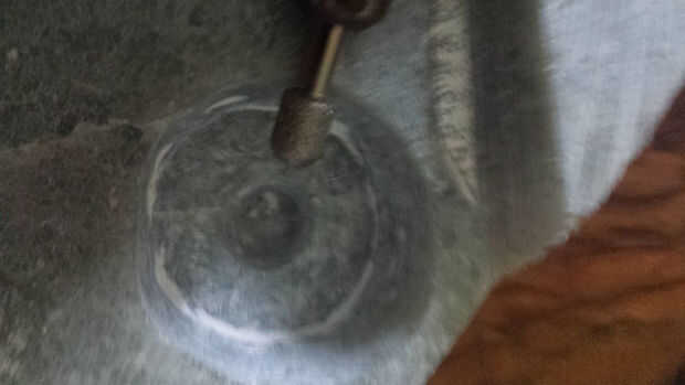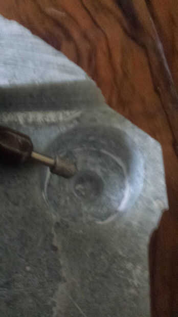 Utilice el dremel y emparejado diamantadas poco a moler agujero del LED y limpiar base de la piedra natural.