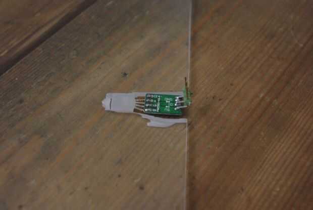 Ahora necesitas hacer un punto de acrílico en la parte superior para el LED en (ver fotos) no te preocupes si es desordenado porque se cubrirá en el producto final - sólo asegúrese de que el extremo del LED esté al ras con el corte - esto hace que la luz se transfiere desde el LED hasta el acrílico tan eficazmente como sea posible.
