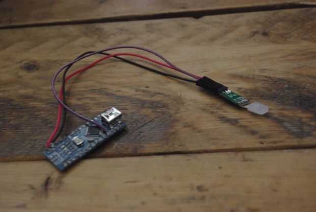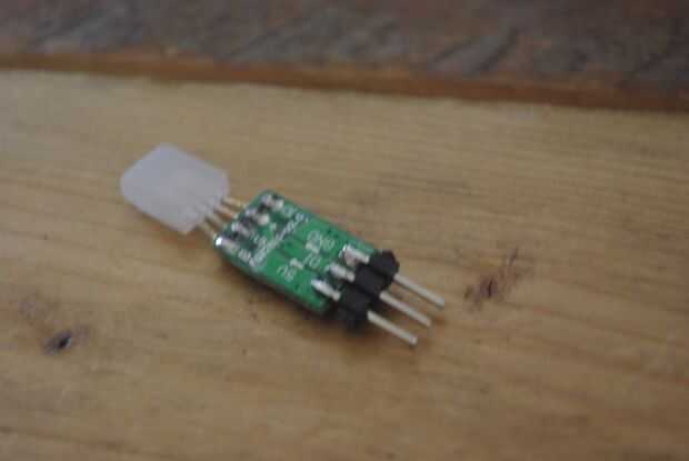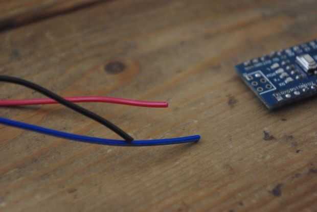 También, asegúrese de que soldar una fila de 3 pines macho de la protoboard para el LED (como se ve en las fotos).