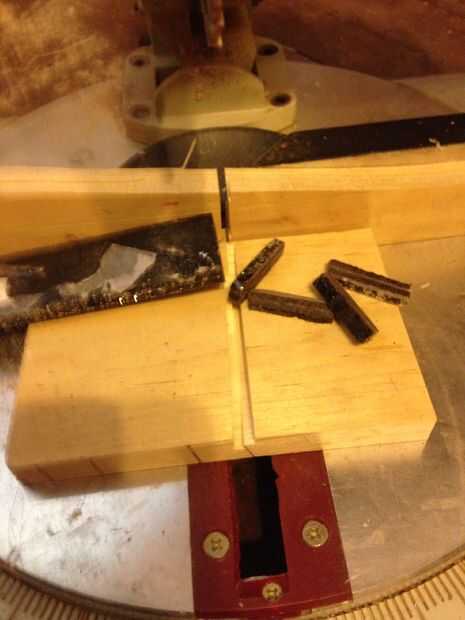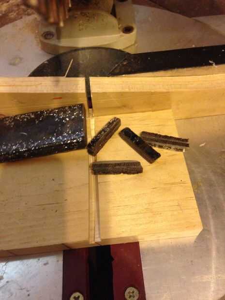 Corte tiras finas de las piezas que se acaba excepto cortaron el camino corto.