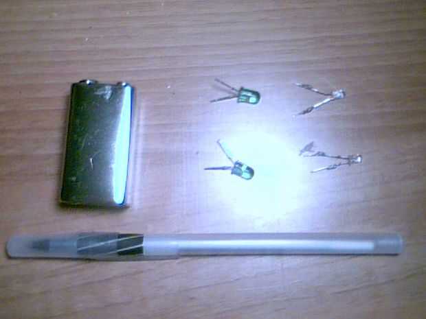 Es necesario: -Batería (3 voltios o más grande, dentro de lo razonable) -1 LED de su elección (muestra 4) -1 pluma Bic con translúcido caso (parcialmente transparente)