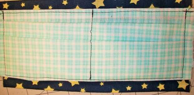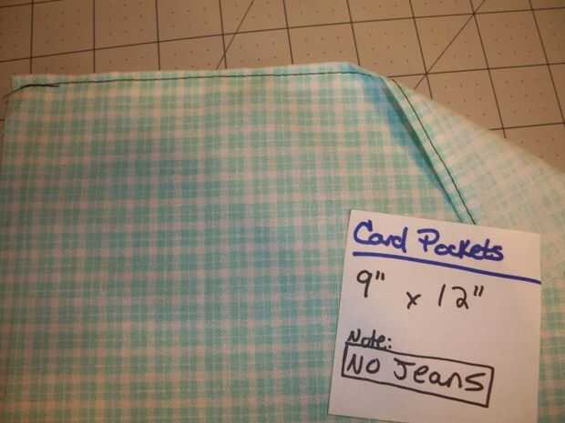 • Tomar la tarjeta bolsillo tela y dobladillo superior e inferior (los bordes del rectángulo estrechos)