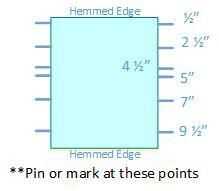 • Este es uno de los pasos clase de "lo alas a ', pero esto es como lo debería haber hecho. PIN o marcar la tela en las siguientes medidas: 1/2" de la parte superior, 2 1/2" de arriba, 4 1/2" de alto, 5" de alto, 7" de alto, 9 1/2" de arriba, algo así como el diagrama de arriba.