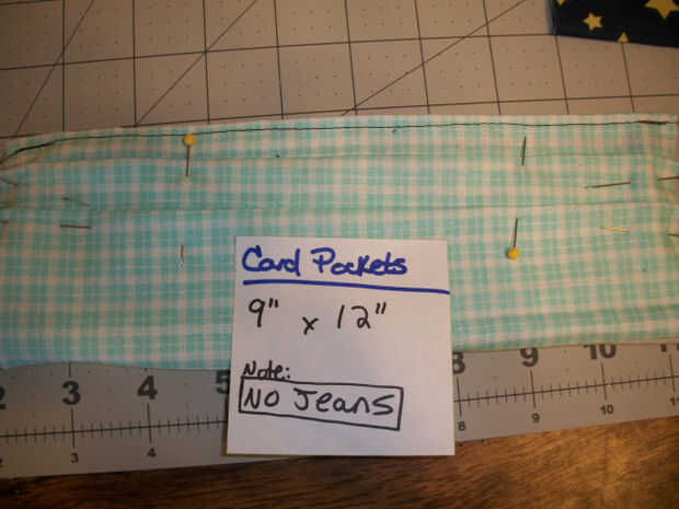 • OK, si ha hecho a este punto, es todo cuesta abajo desde aquí, prometo! Vamos a esto colocar al bolsillo del paso 2 que no tienen la cremallera. PIN que 1/2" hacia abajo desde la parte superior del bolsillo