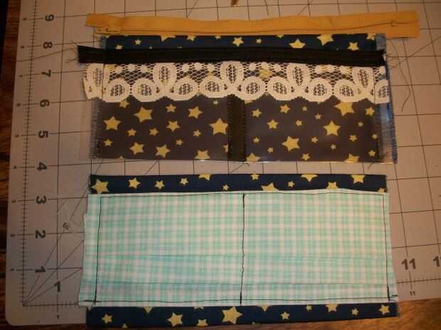 • Poner windows en bolsillo y coser por el centro y a lo largo de la parte inferior. He utilizado el borde del protector de página a lo largo de la parte inferior, asi que ya está "terminado", sólo hay que coser la parte inferior.