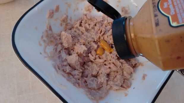 Me gusta mi melodía mezclada con un poco mayo y mi nuevo favorito, un toque de cabeza de Chipotle Mayo de jabalí. Yum!