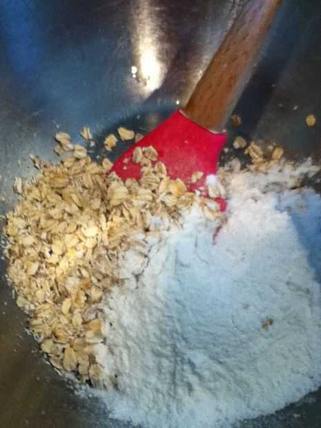 Ahora, en un bol, combinar la avena y la harina juntos.