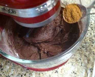 Añadir la mezcla de Brownie a la taza y empezar poco a poco mezclando en el ajuste de velocidad más bajo. O acabarás con la mezcla de Brownie por todas partes.  Como se incorpora la mezcla, aumentar la velocidad y mezcla en alta adicional tres minutos o hasta que la mezcla se convierte en oscuro y brillante en aspecto. Por último añadir la mezcla de especias y batir por un minuto adicional.