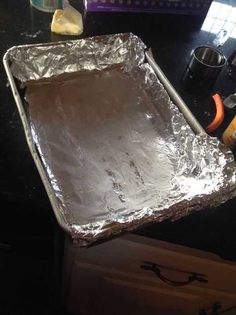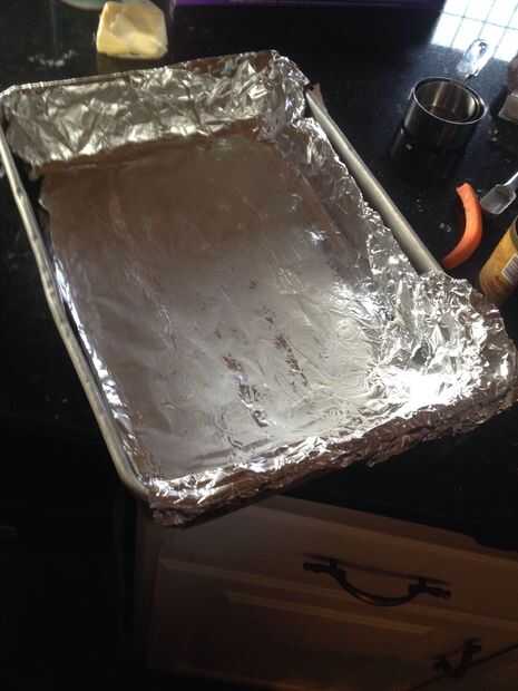 Precalentar el horno a 350 grados Fahrenheit. Línea de la bandeja de 9 x 13 con papel pergamino o papel de aluminio y engrasar. (No necesita engrasar el papel para hornear)