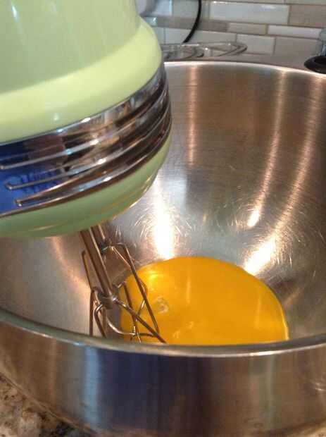 Con una batidora eléctrica, batir las yemas de huevo hasta que esponje. Esto le llevará hasta 5 minutos.