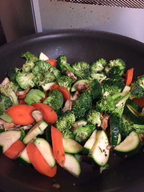 4. agregar los vegetales y cocinar las verduras hasta que esté casi listo.