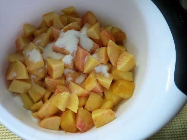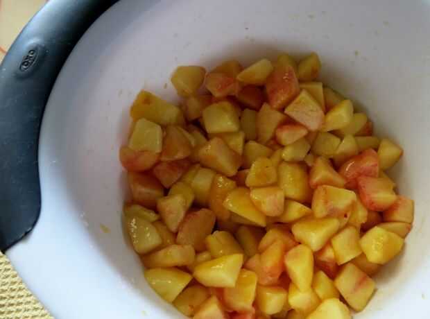 Mezclar los melocotones y nectarinas en un tazón grande con el azúcar y la sal y dejar que se sienta, revolviendo ocasionalmente, durante 30 minutos.