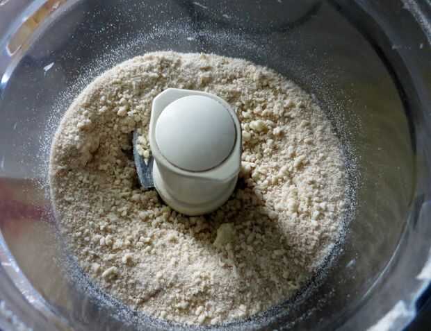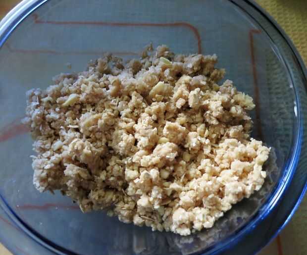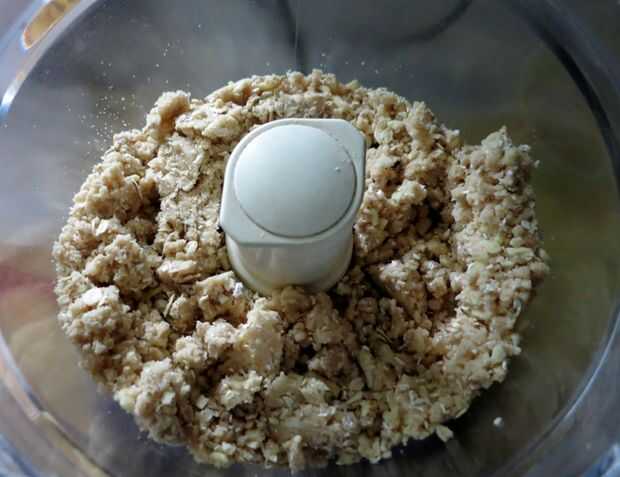 Mientras están macerando melocotones, combinar harina libre de gluten, azúcar morena, azúcar, canela, jengibre y sal en el procesador de alimentos y procese hasta que combinados, unos 15 segundos. Agregue la mantequilla y pulse hasta que la mezcla se asemeja a la arena húmeda, pulsos de unos 8. Añadir la avena y las almendras y pulso hasta que mezcla formas tamaño de mármol macizos no hay harina suelta, pulsos de unos 15. Enfriar la mezcla durante al menos 15 minutos.