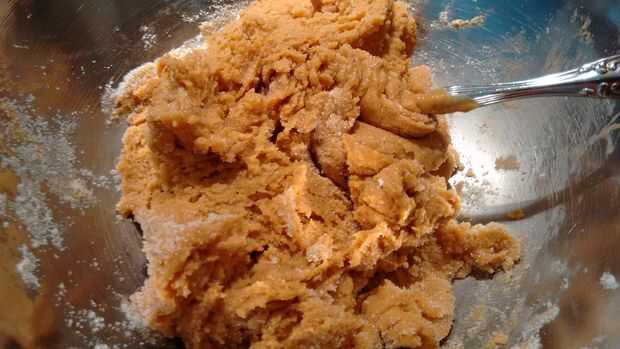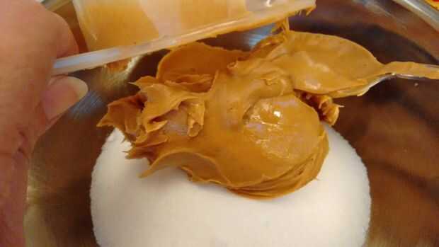 Mezclar 1 taza de azúcar y 1 taza de mantequilla de maní.