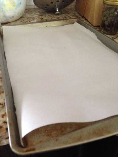 Colocar papel sulfurizado en la bandeja para hornear galletas.