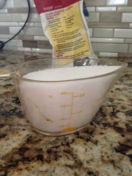 receta por Christina Provo (www.runningfoodie.com)Estas galletas de mantequilla de maní masticables se presenta con un capa de café.Paso 1: Ingredientes- 1 taza más 3 cucharadas de harina1 taza de harina de pan3/4 de cucharadita de bicarbonato de sod