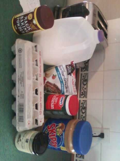 Ingredientes: 1 taza de harina de arroz 1/2 taza de leche Mantequilla de maní 2 cdas 1/4 taza Parm. Queso 1 cucharada de caldo de pollo 1 clara de huevo 1 cucharadita de polvo de hornear