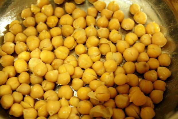 Al día siguiente, drene el agua del recipiente, coloque los garbanzos en una olla y llenar la olla con agua fría. Gire el calor alto en la estufa, poner el agua a hervir y luego reduzca el calor a fuego lento con una cubierta en su bandeja. Cocinar a fuego lento los garbanzos durante unas 3 horas o hasta que estén suaves. Escurrir los garbanzos, sal al gusto y dejar de lado.