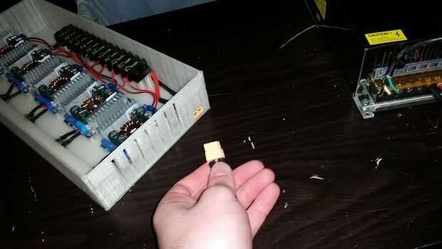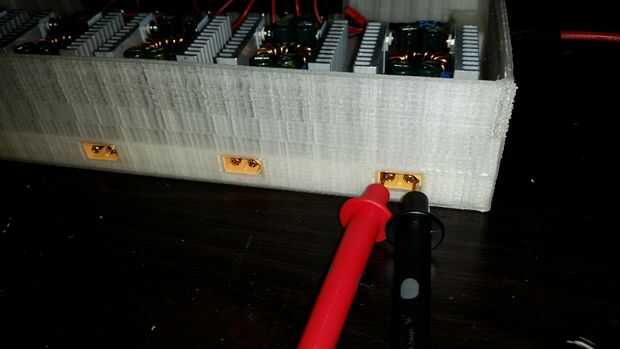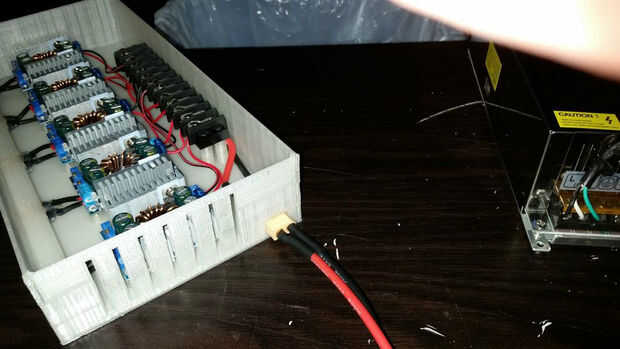 Bien según sus aptitudes del cableado o la dirección siguiente (tos tos Bob) esto podría ser bastante agitada. Coge el conector XT60 de macho a macho que hicimos anteriormente y enchufe un extremo de la misma en el conector de entrada de alimentación del cargador (el conector de la barra) y luego conecte el otro extremo en el conector de alimentación que hicimos anteriormente. Luego toma una respiración profunda y enchufe la fuente de alimentación a la pared. Veremos cinco luces verdes dentro de la caja del cargador. Si no oh no, desordenado Desconecte la fuente de alimentación (tiene un auto restablecimiento fusible después de unos minutos) y luego rastrear la conexión corta o suelta. Ahora esperemos que para todos solo funciona bien y no tienes que solucionar. Agarra a tu voltímetro y cambie al modo de la c.c. (línea recta con una línea discontinua) y deslice sus cables en el conector de salida de PCEEJ primer, no permitir que los conductores toquen. Deberías ver algún voltaje al azar alrededor 19volts. Coge su pequeño destornillador de cabeza plana y ajuste el rectángulo de olla/azul CV. Gire el tornillo marcado contra las agujas del reloj para disminuir la tensión y hacia la derecha para aumentar. Conjunto el voltaje a 16,8 voltios (ver tu medidor al ajustar el tornillo) lo mismo para lo restantes PCEEJ. Desconectar y dejar de lado una vez que termine de hacerlo.