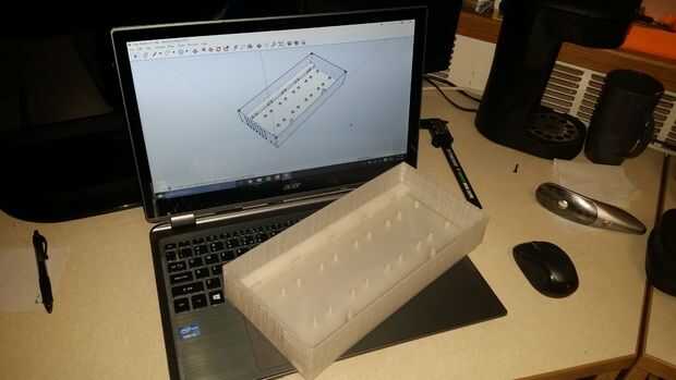 Diseñé un caso imprimible 3d para este cargador para que todos los componentes están uniformemente espaciados, así que el cargador se ve bien. Guardo todos mi .stl archivos de código abierto, así, y se puede encontrar en el siguiente enlace siguiente. Como una palabra de precaución chicos con impresoras más pequeñas el caso mide 300mm por 140mm. Pero no temas, proporciona el archivo de google sketchup en Thingiverse para que puede modificar el caso para satisfacer sus necesidades. Imprimí el caso en PLA con relleno nido de abeja de 30% y en lonchas con la última versión de Slic3r 1.2.9.