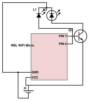 - Nos estamos conectando pin amarillo del LED bicolor a Pin 6 en RBL WiFi Micro