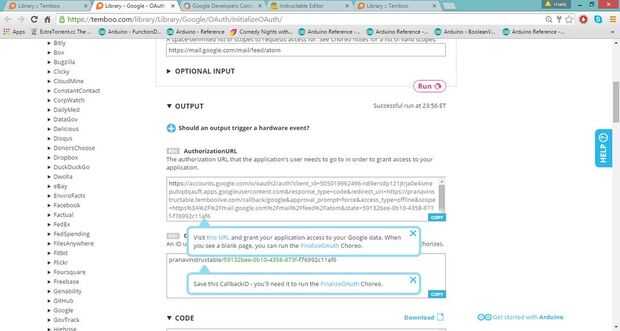 - Ahora si un blanco página demuestra para arriba, que significa que todo está bien hasta ahora y han Temboo los derechos para leer sus correos electrónicos a través de la aplicación creada.