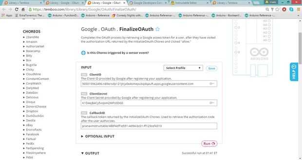 Conceder acceso a temboo de la aplicación de Google y generar un Token de acceso