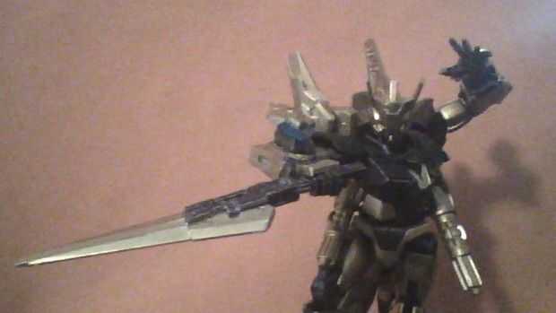 Con los marcadores de pintura y pocos recursos que tenía, he intentado restaurar el modelo original lo mejor que pude. El robot fue rescatado apenas pero faltan muchos detalles así que vieja espada, arma y mochila piezas que tenía de otros kits y pegado al kit, también coordinó el nuevo esquema de color a las armas.