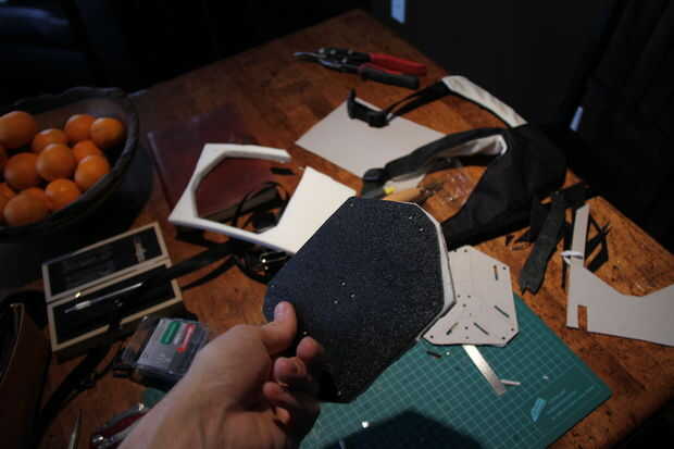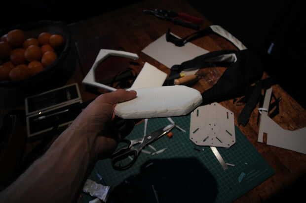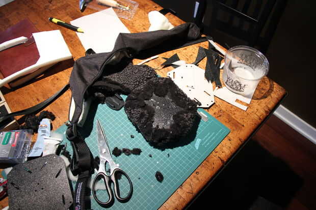 La espuma puede ser cortada en la forma básica primero contorneada con las tijeras una vez en el lugar. Este proceso se repite cuando se aplica la segunda capa de espuma más suave.