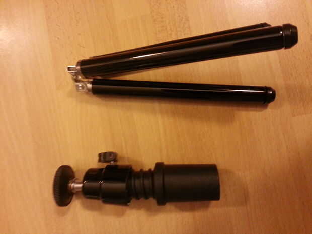 desmontar el trípode chino y fijar la Unión a la pieza superior del poste.