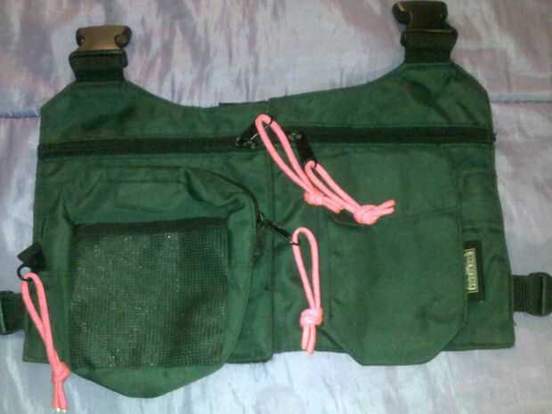 OK, este es un viejo chaleco de pesca con mosca Fieldline, bueno al menos la mitad de ella. Se ha modificado ligeramente a clip en los clips que puedes ver en la segunda foto, ajuste en el pecho. El centro se cierra con Velcro para sacar el paquete es tan sencillo como deshacer el centro, no desenganche de la pechera.