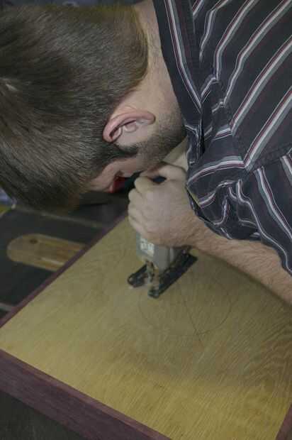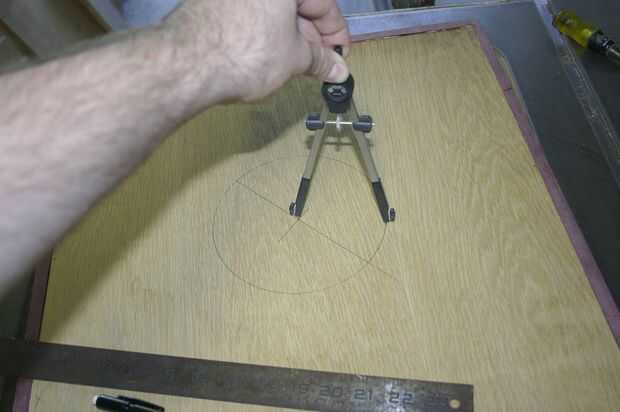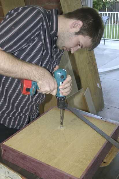 Usando una brújula, dibujar el diámetro del agujero que usted quiere cortar, luego use un taladro para iniciar el agujero. Romper su sierra alternativa e ir a trabajar. Usted puede limpiar los bordes con el huso de una lijadora de husillo más adelante.
