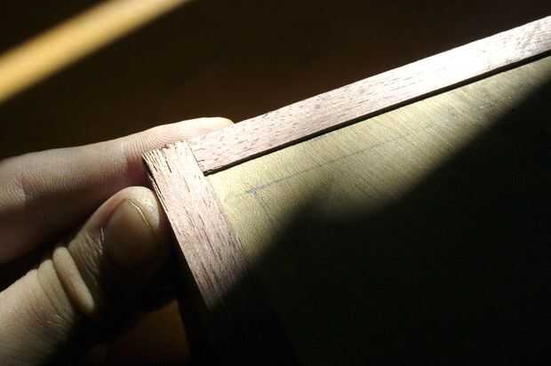Una vez que el fondo está encendida y sujeta, encontrar el centro dibujando una línea de esquina a esquina. Esto es donde se corta el agujero de resonancia como una guitarra acústica.