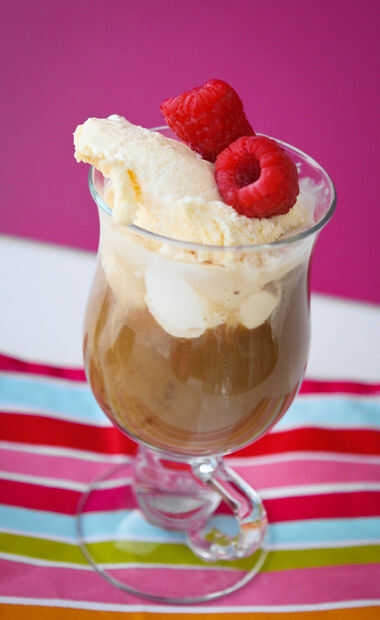En un bol apto para microondas, conserva calor 2 cucharaditas de frambuesa, para ablandar. Mezcle las conservas ablandadas con el café frío.