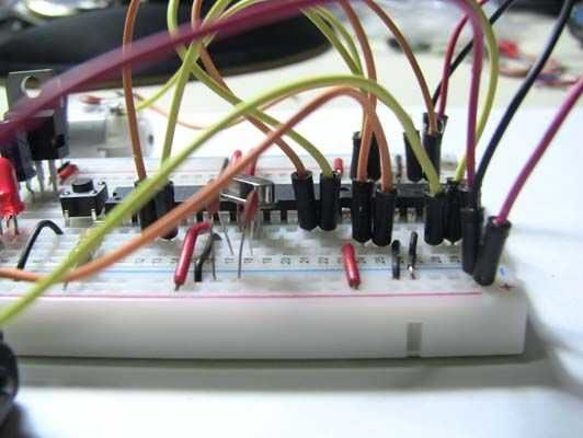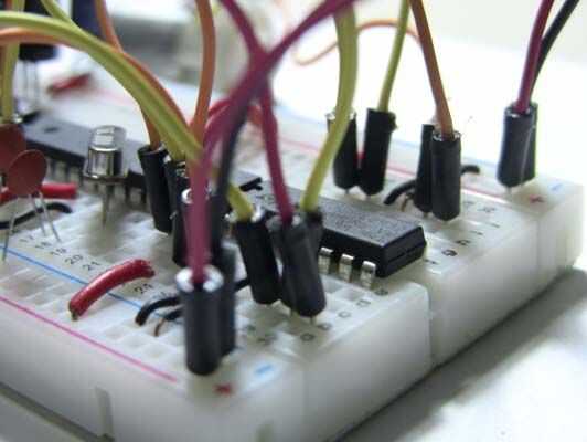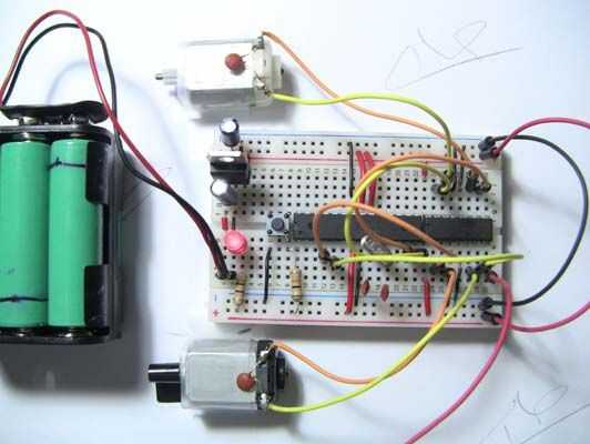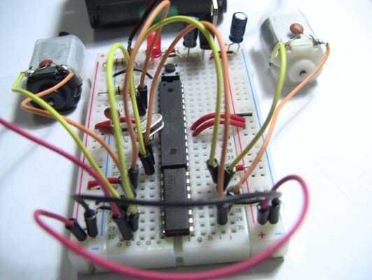 14/03/2012: he añadido un condensador electrolítico de 100 uF entre la fuente de energía del motor (8 pines en el L293D) y GND. El diagrama de Fritzing muestra la adición de este condensador pero las fotos aún no. He también he arreglado algunos errores tipográficos.