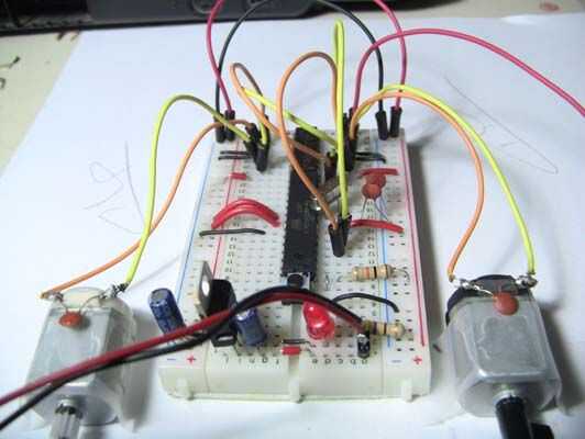 He diseñado unos robots usando la Arduino Uno y el escudo del Motor de Adafruit. Ambos son grandes para prototipos. Pero desarmar mi robots cada vez que necesitaba para construir otro robot. No es rentable para comprar más microcontroladores Arduino y motor escudos para cada nuevo proyecto de robot.