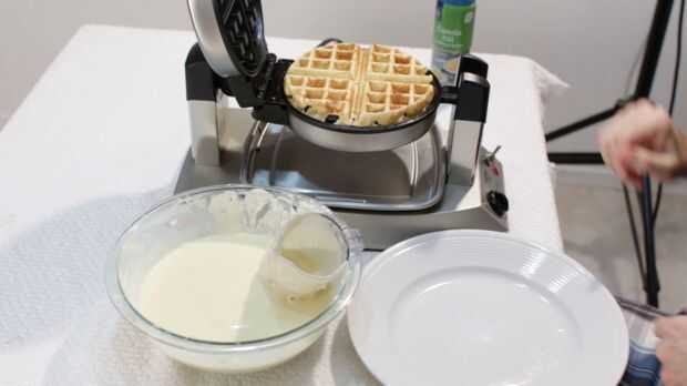Ahora sólo uso el barquillero favorito y completar tus waffles. Mina es bastante elegante, cuesta cerca de 80 dólares, pero pensé que valía la pena, ya que hacer waffles mucho. Puede utilizar cualquier molde para gofres. Pero para conseguir el estilo más grande waffles, desea que los hierros profundos como el mío, tienen así más baratos planchas gofres belgas. Mina tiene una luz indicadora cuando el barquillero se calienta y emite un pitido cuando los gofres (bien dorados). Asegúrese de que use aerosol de cocina en la plancha, la primera vez. Me encuentro con este lote (6 gofres) basta rociar el hierro al principio. Sin necesidad de rociar entre cada galleta, a menos que el hierro es una paliza, y seguirán pegando los gofres.