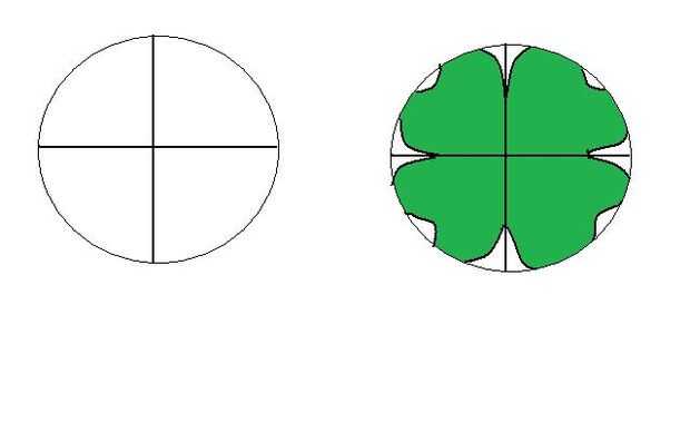 Mi mamá solía usar colorante verde verde leche y tortitas de verdes para celebrar día de San Patricio cuando era pequeño, así que este paso es un fugaz intento recuperar mi juventud desperdiciada.  Como se puede ver en la imagen muy crudamente hecha (que probablemente cualquiera con photoshop hacer llorar amargamente), la transición de waffle completo a shamrock es sólo una cuestión de sacar un triángulo con bordes asintóticos de cada sección de barquillos y removiendo un poco tramo curvo de la parte superior de cada trimestre.