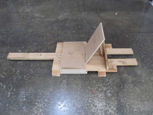 Esencialmente, está hecha de pino, que es light(ish). Quieres un Consejo principal que se extiende desde adelante hacia atrás ayuda. El asiento está hasta usted. Podría ser una silla de plástico con las piernas cortadas. El montaje de motor debe ser resistente