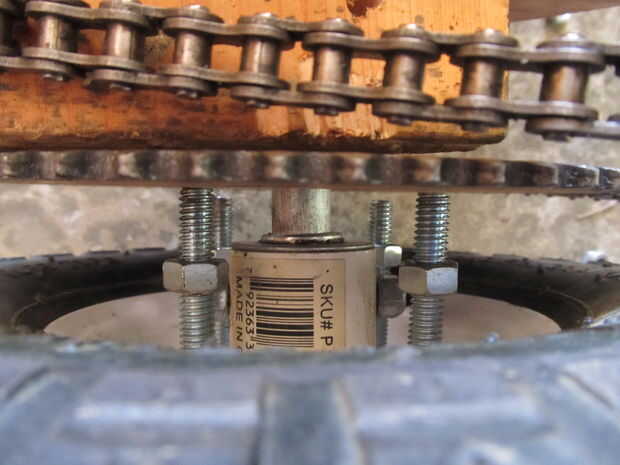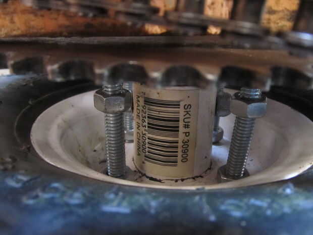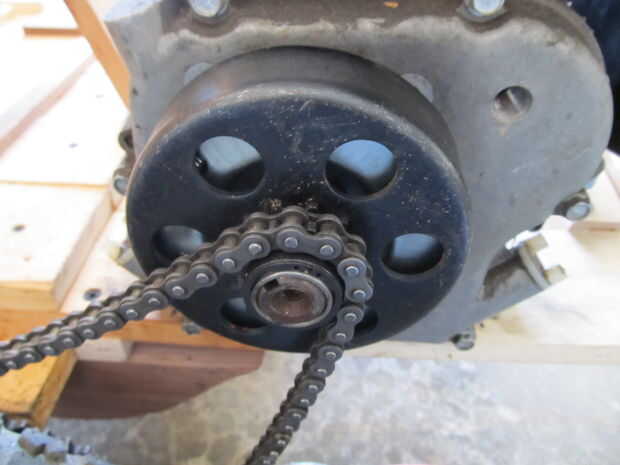 Compré un piñón y un Torque máximo de embrague y una cadena de #35. La rueda dentada realmente está atornillada al eje.