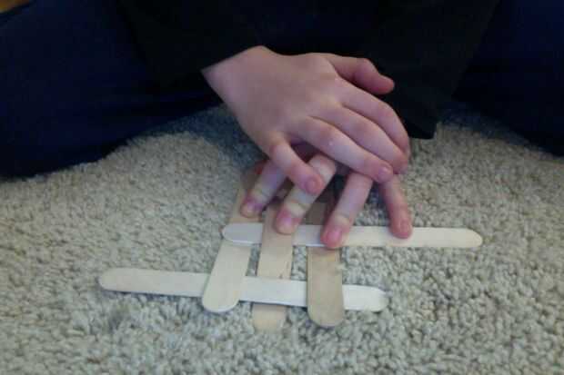 esto es fácil de construir y sólo utiliza 5 palitos. Explota cuando golpea el suelo. Un popsicle stick mi descanso pero generalmente no sucede.Paso 1: Esta es la parte fácil Solo mira la imagen.Paso 2: Esto es cuando se pone duro Asegúrese de constan